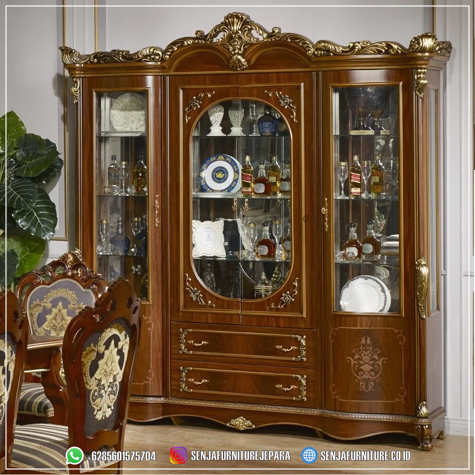 Gambar Lemari Hias Mewah Klasik Ruang Makan 4 Pintu