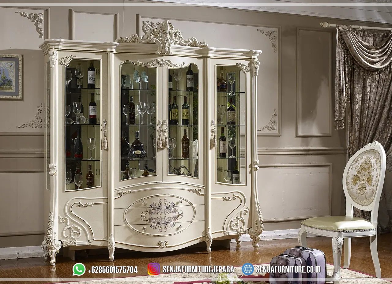Dengan ruang penyimpanan yang mencukupi, Anda dapat dengan mudah menata koleksi barang berharga Anda. Lemari Hias Mewah adalah pernyataan gaya yang berkelas dan memberikan sentuhan elegan yang akan meningkatkan estetika ruangan Anda dengan gemilang. Dibuat dengan detail yang teliti dan perpaduan antara kayu yang indah serta ukiran yang memukau, Lemari Hias Mewah ini tidak hanya menawarkan fungsi praktis sebagai tempat penyimpanan, tetapi juga menjadi titik fokus yang menarik perhatian tamu ketika berkunjung ke rumah Anda.
