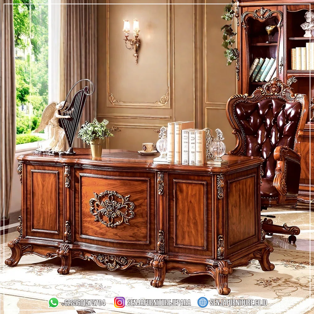 Kursi Meja Kerja Direktur Klasik Kulit Asli Satu Set
