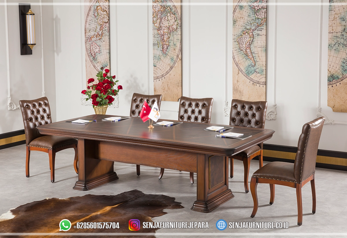 Kursi Meja Meeting Kantor Minimalis Design Kayu Jati 8 Kursi
