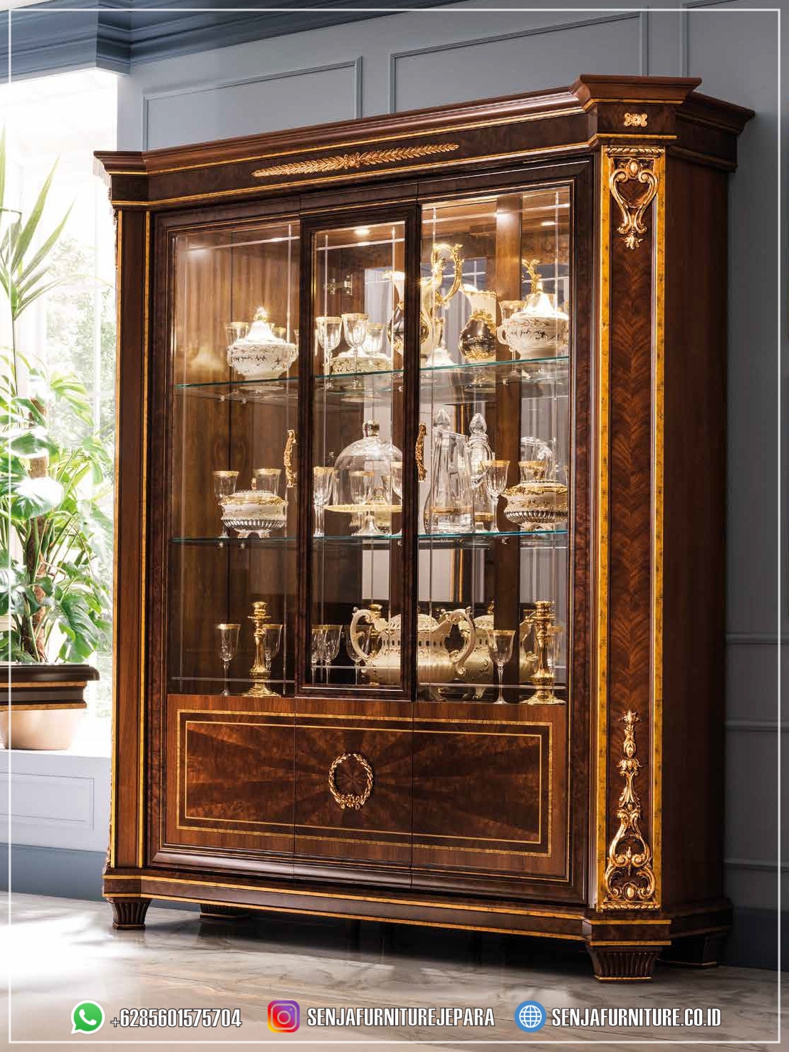 Dengan ruang penyimpanan yang mencukupi, Anda dapat dengan mudah menata koleksi barang berharga Anda. Lemari Hias Mewah adalah pernyataan gaya yang berkelas dan memberikan sentuhan elegan yang akan meningkatkan estetika ruangan Anda dengan gemilang. Dibuat dengan detail yang teliti dan perpaduan antara kayu yang indah serta ukiran yang memukau, Lemari Hias Mewah ini tidak hanya menawarkan fungsi praktis sebagai tempat penyimpanan, tetapi juga menjadi titik fokus yang menarik perhatian tamu ketika berkunjung ke rumah Anda.