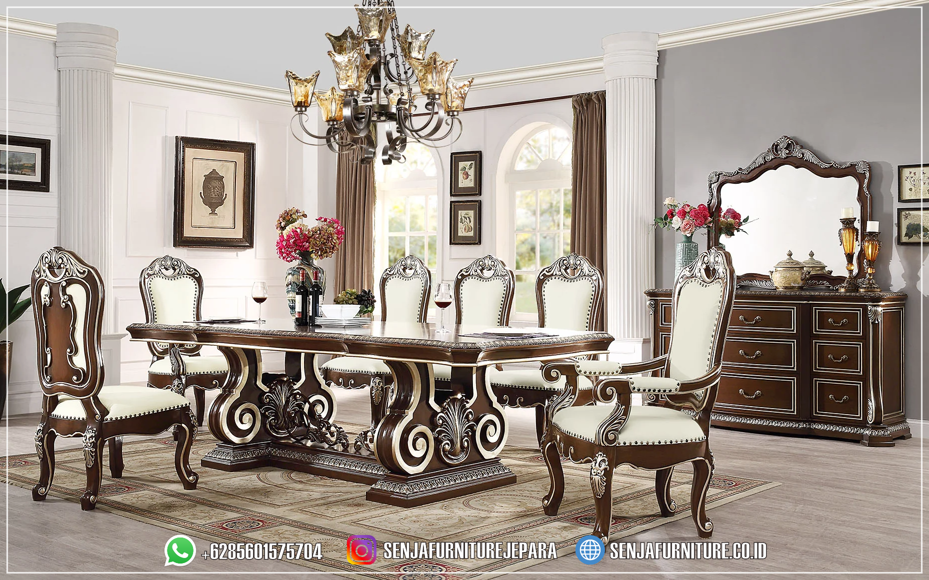 Mebel Jepara Meja Makan Jati Super Mewah 8 Kursi Turkey
