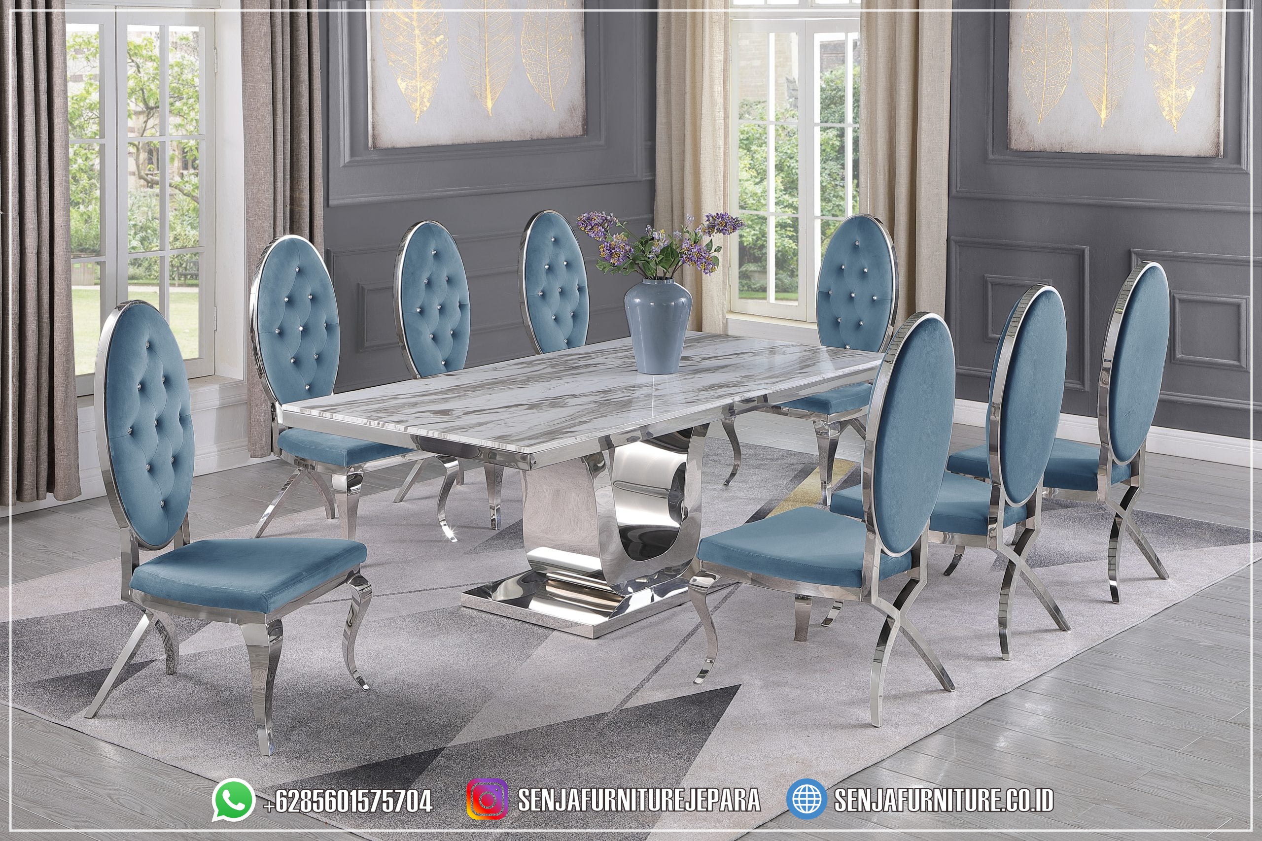 Meja Makan Marmer 8 Kursi Super Mewah Import Itali