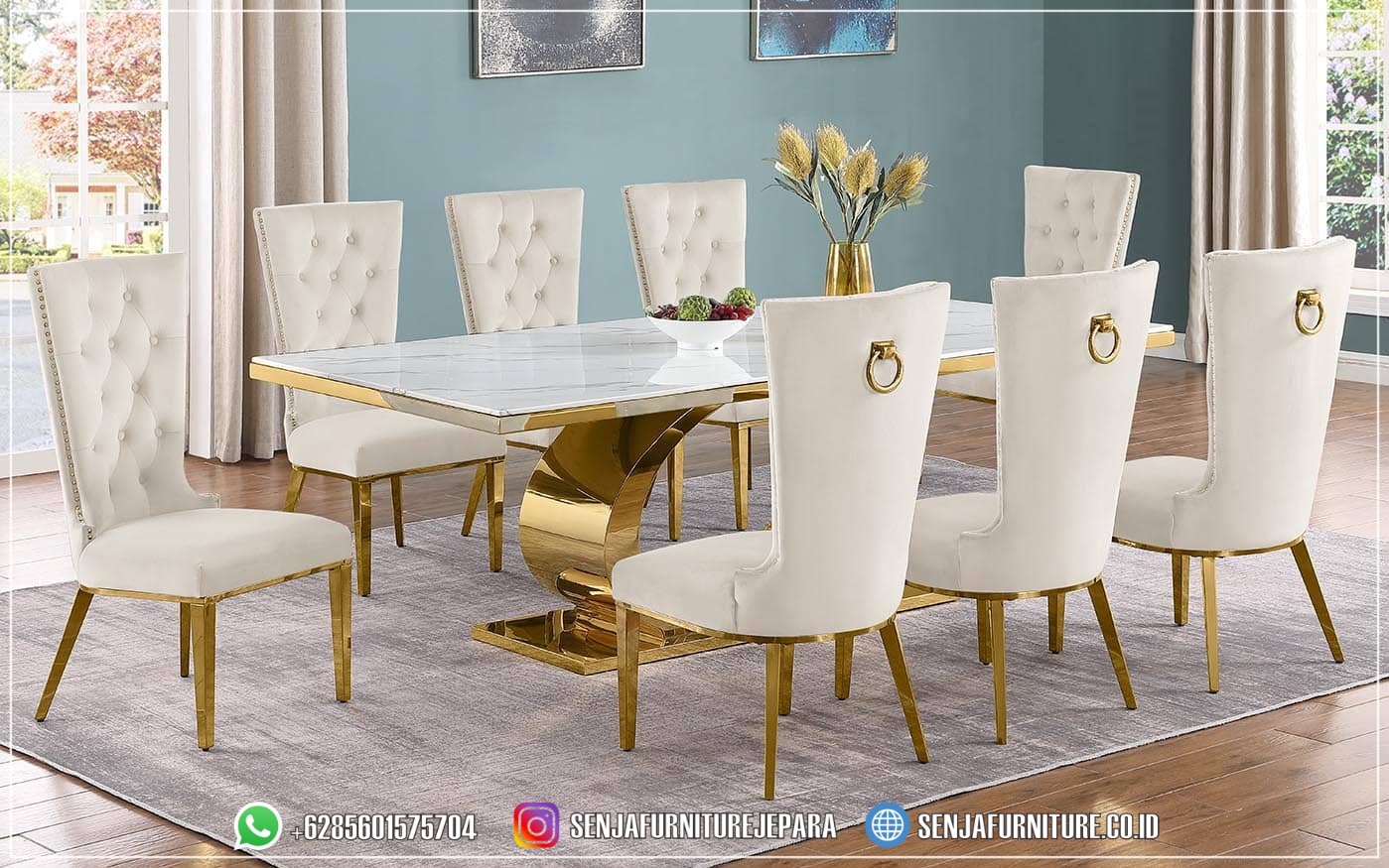 Ruang Meja Makan Marmer Mewah Gold 6 Kursi Inverno