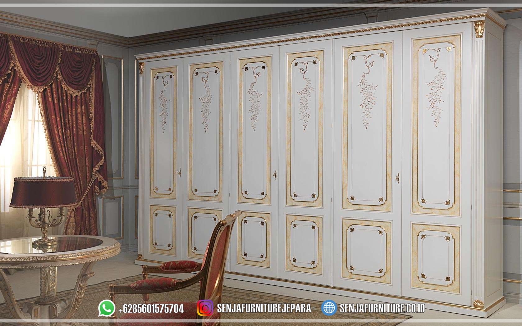 Wardrobe Lemari Pakaian Mewah 6 Pintu Klasik Minimalis